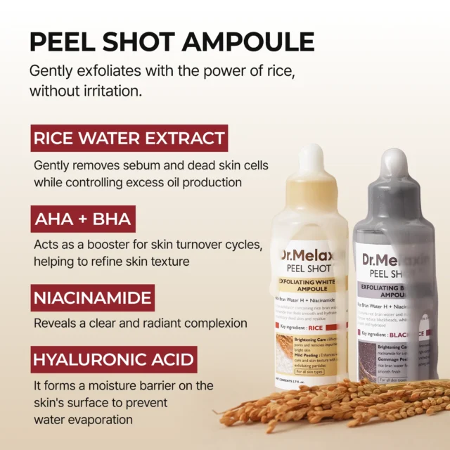 – Black Rice Essence (80ml): Gently exfoliates dead skin cells, smooths texture, and revitalizes dull skin.